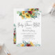 Flores de água amarelas brilhantes, rosa vermelha de burlões e verde de eucalipto tornam este Chá de fraldas de convite colorido com estilo e charme. O esquema de cores feliz dá o tom para uma celebração agradável para receber um novo bebê. Convide amigos, família e casais, quanto mais alegre! Os emparelhamentos faciais do tipo de tendência incluem script manuscrito e serif elegante. Este convite é uma escolha excelente para o casal que está esperando uma menina ou um menino. Girassóis fazem uma peça central tão maravilhosa ou decoração floral para o seu evento. Personalize o modelo de texto fácil de usar com os detalhes do chá de fraldas.