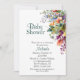 Convite neutro para chás de fraldas brancos de gênero, com flores silvestres coloridas coloridas amantes, no topo direito. Personalize todos os campos de texto para o evento do seu chá de fraldas.