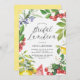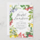 Watercolor Summer Frutas Floral Bridal Convite à Noite | convide familiares e amigos para o almoço de noiva com este convite personalizável. Apresenta ilustrações aquarelas de limões, amoras-framboesas, melancia e folhagem. Personalize ainda mais a parte de trás do convite mudando o plano de fundo para qualquer foto ou imagem. Este convite botânico é perfeito para a primavera e lanchonete de verão.