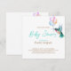 Convide os convidados para o seu chá de fraldas com este convite elegante desenhado com um beija-flor intricadamente detalhado e balões de cor suave. Estimulado em branco clássico com guião ouro e aqua. Artesanato original pintado à mão em aquarela.