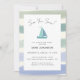 Esses convites de chá de bebê simples e minimalistas são perfeitos para celebrações náuticas! Eles apresentam seu texto personalizado em tipografia clássica e um script manuscrito estiloso para um título marítimo atraente: "Sea you Soon" (Nos vemos em breve), que pode ser alterado para "Baby On Board!" (Bebê a Bordo!). O design simples é decorado por um adorável barco em aquarela azul e listras de diferentes tons do oceano, o que dá um toque costeiro a este convite de chá de bebê para menino. O verso apresenta as mesmas listras em verde e azul marinho em aquarela. Crie o seu clicando no botão "Personalizar".
