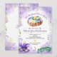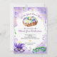 Celebre o Mardi Gras com este convite de festa impresso com um bolo king cake em aquarela contra um fundo de vinheta em aquarela roxa. Contas e fitas douradas, verdes e roxas estão espalhadas ao redor do convite com duas máscaras de Mardi Gras na parte inferior do convite. O acento de fleur de lis em aquarela complementa a peça. Perfeito para uma celebração do Mardi Gras ou Terça-feira Gorda, um chá de noiva ou de casamento com tema Mardi Gras, uma despedida de solteira em NOLA ou uma celebração de aniversário. Disponível com produtos correspondentes.