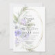 CONVITE DE NOIVADO | Flores em aquarela e formas geométricas douradas com folhas de eucalipto, anêmonas lilás e violetas e flores de hortênsia, - uma moldura oval multifacetada dourada adornada com folhas de eucalipto e buquês florais. O verso é uma cor coordenada complementar. Personalize o texto, estilo de fonte, cor e tamanho. Esta é parte de uma Suíte de Papelaria de Casamento completa com papelaria de casamento, chá de bebê e outros eventos correspondentes.
