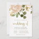 Este elegante convite para o casamento mostra flores de cor-de-água modernas em tons de rosa cor rosa, poeirento e esticadas com bastante verde e sotaques de ouro modernos e falsos. Sutil cor-de-água rosa-pincelada parece cinzas decoram o fundo.
