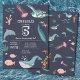 Um belo e colorido design de bichos-do-mar. Um oceano é um design com animais do mar bonitos, como uma tartaruga, baleia, golfinho, água-viva, peixe, narbaleia, plantas marinhas e corais. Um design ideal para quem ama animais marinhos, ilustrações de aquarelas e designs de temas oceânicos. Personalize o monograma e faça dele seu!
