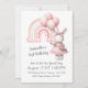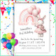 Encantando convite de aniversário de coelhinho rosa! Adorado com balões de festa flutuando no ar e enquadrado por um arco-íris pastel, este encantador convite captura a essência da alegria e do entusiasmo. Calorosamente, convoca-vos a juntarem-se às festividades e a criarem memórias queridas.
