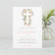 Convites Aquarela Peach Floral Cross Baby Dedicação
