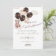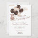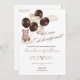 "Celebre a chegada do nosso pequeno pacote de alegria com este adorável convite de chá de fraldas inspirado na aquarela. Apresentando um doce ursinho segurando balões metálicos marrons e cercado por nuvens macios e peludas, essa design capta o entusiasmo e o calor da chegada. Com uma mensagem divertida 'Mal podemos esperar!', é a maneira perfeita de convidar pessoas amadas a se juntarem à diversão enquanto esperamos pelo nosso filho."