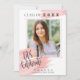 Aquarela Rosa | Classe De 2025 | Convite para graduação de fotos. O vamos Celebra A Classe Elegante De Script Do Convite Para Graduação 2025. Anuncie orgulhosamente o formando com esses cartões de convite para a graduação de fotos modernos da na moda. O design tem espaço para uma foto do seu formando com "VAMOS CELEBRATE" escrito em letra de script bonito. A parte traseira da placa tem todos os outros detalhes da festa de formatura. Personalize o cartão carregando uma imagem e alterando os detalhes. Para mais personalizações, contacte-me em mypaperlove2021@gmail.com