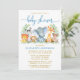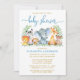 Convites Aquarela Safari Animais Chá Azul Script Dourado