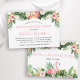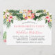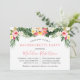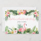O Cartão de Convite à Festa de solteira Tropical de Aquarela Elegante moderno inclui flores cor-de-rosa, brancas, amarelas e folhas de palma botânica insulares. Script de caligrafia de tendências. Flamingo Cor-De-Rosa.