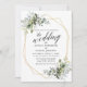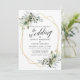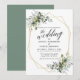 A Carta de Convite para Casamento de Mola de Caligrafia Moderna, com Elegante Watercolor Greenery, inclui folhas de eucalipto, folhagem botânica verde, folhas azuis empoeiradas e outros belos lençóis botânicos. Quadro Geométrico Dourado, Verde Sage