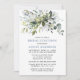 O Cartão de Convite para Chás de panela de Lunco de Cor Biológica Elegante Moderna inclui folhas de eucalipto, folhagem botânica verde, folhas azuis empoeiradas e outros belos lençóis botânicos. Pó Azul.