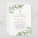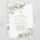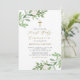 Watercolor Greenery and White Flowers Primeiro Convite Comunitário | Convide familiares e amigos para o seu evento com este convite verde personalizável. Apresenta ilustrações de aquarela e padrão de folhagem e flores brancas. Este convite floral é perfeito para primavera e jardim primeiro, sindicatos sagrados.