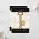 Não há nenhum lugar como. sua casa nova! Comemore com estes convites de festas do housewarming que caracterizam uma chave de esqueleto do estilo da antiguidade do ouro com um símbolo da flor de lis em um preto, em um branco e em um design do ouro.