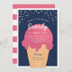 Anuncie sua pequena comemoração de aniversário de verão com estes convites temáticos de sorvete festivo em uma paleta de cores de verão. O design moderno apresenta um cone waffle com um sorvete cor-de-rosa com "aqui está a capa" gravada no topo, e os detalhes da festa de aniversário do seu filho abaixo.