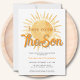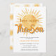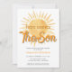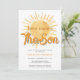 Convide a família e os amigos para o bebê do seu filho temerário com este convite fofo. É decorado com tipografia na moda e um sol amarelo de aquarela. As costas estão decoradas com um padrão solar. Facilmente personalizável. Original Watercolor © Michele Davies.