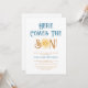 Convide a família e os amigos para o seu chá de fraldas temático com este belo convite para o chá de fraldas dos rapazes. Apresenta o texto "Aqui Vem o Filho" em retrorreflectotipografia com uma cor amarela e gira-d'água. Facilmente personalizável. Original Watercolor © Michele Davies.