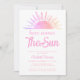 Convide a família e os amigos para o chá de fraldas de sua garota com tema solar com este bonito convite. Ele apresenta o texto "Aqui Vem O Sol" na tipografia na moda com um sol cor-de-água rosa. Facilmente personalizável. As costas estão decoradas com um padrão solar. Original Watercolor © Michele Davies.