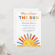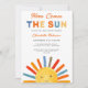 Convide a família e os amigos para o seu chá de fraldas temático com este convite para chás de fraldas ensolarados. Ele apresenta o texto "Aqui Vem O Sol" em tipografia colorida e um sol de aquarela. As costas estão decoradas com um padrão solar. Facilmente personalizável. Original Watercolor © Michele Davies.