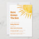 Este convite de chá de fraldas, cujo gênero é neutro, é decorado com um sol pintado à mão e "Aqui Vem o Sol" na tipografia de na moda retro. Facilmente personalizável. Use a Ferramenta Design para alterar o tamanho, o estilo ou a cor do texto. À medida que criamos a nossa trabalho de arte, não encontraremos esta imagem exata de outros designers. Original Watercolor © Michele Davies.