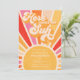 Aqui vem o primeiro aniversario Sun Sunshine Rainbow InvitationTodos os designs são © PIXEL PERFECTION PARTY LTD