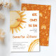Este alegre convite para o chá de fraldas "Aqui Vem o Sol" combina tons cor de laranja saudáveis, arco-íris e um sol sorridente — uma mistura perfeita de amor e charme solar. Excelente de outono ou chás neutros de gênero, esta design traz felicidade aconchegante para a sua celebração. Personalize todos os textos facilmente online para um convite verdadeiramente único e animador.