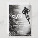 Este convite de aniversário de bicicleta de montanha 50th apresenta um desenho a lápis de uma bicicleta de montanha captando ar em uma trilha incrível.
