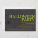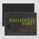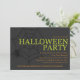 As características deste design o partido do Dia das Bruxas das palavras em letras principais verdes ao lado de uma aranha preta assustador em uma Web de aranha e seu partido detalham na laranja abaixo. Ajuste em um fundo preto. ©Cheri Wenger dos gráficos.