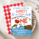 Diversão de pesca Enguia Ofisicamente Um primeiro aniversario Convite Rapazes Cutes pescando o primeiro aniversário convite com uma grande palavra vermelha, cana de pesca, peixe, barco, lures e muito mais. Ideal para uma primeira festa de aniversário de pesca.