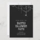 Convide seus convidados para um evento de arrepio com estes convites do Festa de Halloween. A design apresenta um fundo preto minimalista com uma delicada teia branca de aranha e uma aranha assustadora pendurada por cima do texto. A tipografia ousada e assombrada acrescenta à atmosfera sombria, fazer este convite perfeito para dar o tom a uma reunião fantasmagórica. Ideal para aqueles que querem criar uma vibração negra e misteriosa para a celebração do Dia das Bruxas.