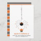 Um convite de aniversário para crianças, com uma aranha e um cupcake.