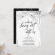 Convide seus convidados para vir e sair com você para o Dia das Bruxas. O cartão apresenta o texto "venha sair conosco" em uma fonte com letra manuscrita com teias de aranha como uma borda.