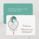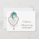 Aqui está um convite "Você Será Minha Dama de Honra?" muito fofo que apresenta um lindo apanhador de sonhos em forma de coração decorado com penas coloridas de estampa vibrante. As cores das penas incluem azul-turquesa, dourado e rosa, com uma pena rosa coral pendurada na parte inferior da imagem do apanhador de sonhos. Seu texto personalizado é marrom suave à direita, e o fundo é branco. O verso do convite é azul-turquesa vibrante combinando, com seu texto personalizado em branco, e há muito espaço para dizer o que você quiser. Fofo, com um toque de charme ocidental! Este cartão combina com os convites de casamento e outros produtos de casamento em nossa loja.