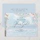 CONVITE PARA FESTA DE NOIVA | Com vista para o oceano - O topo deste elegante arbor de praia à beira-mar feito de tule transparente decorado com flores de magnólia cor de rosa pálido e videiras, montado numa praia arenosa com ondas de água branca. Ao fundo, um belo céu azul com nuvens fofas. Obra de arte original criada para a BarefootBride™ por © WhimsicalArtwork™ - Esta é parte de uma Suíte Completa de Papelaria de Casamento com convites de casamento, chá de bebê e outros eventos correspondentes.
