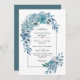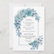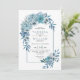 Este belo arco de vassoura com flores azuis e lacas e flores azuis de chá e folhas é a forma perfeita de convidar os seus convidados para o seu dia especial. A adorável design do casamento mostra um arco com dalia e flores rosa e folhagem em tons azuis que irá adicionar um toque de elegância e sofisticação ao seu casamento. A parte de trás deste maravilhoso convite é uma cor verde sólida, fornecendo um contraste exclusivo à frente.