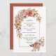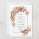 Este belo convite para o casamento apresenta um arco estilo boho com flores e folhas autóctones. A design é adorada com dalia e rosa, flores, assim como folhagem em matizes adoráveis e autóctones. A parte de trás do convite é uma cor sólida de terracota. Este design de animação está certo de dar o tom para um dia mágico de casamento.