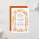 Este convite de casamento no outono mostra uma fronteira de bagas de laranja queimadas e folhas formando um arco. O lado frontal deste charmoso design exibe um esquema de cor laranja queimado junto com os nomes e o texto, todos elegantemente enquadrados dentro do arco de bagas e folhas. A parte de trás do convite é uma cor laranja sólida queimada, fornecendo um aspecto coeso.