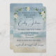 Rede náutica com design de arco floral azul e marfim e estrelas-vivas num fundo oceânico de cor aquática para chá de panela.