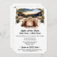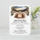 Uma bela ilustração com aquarelas que apresenta uma longa mesa formal de jantar moldada por uma lanterna com aquarela e um arco foliar através do qual é vista uma paisagem rural no pôr do sol. Esta design é ideal para um tema tucano; casual de um país ao ar livre ou casamento estilo boho. Personalize o texto para garantir que ele atenda às necessidades do dia do casamento.