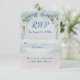 Rede náutica com arco floral branco e azul num fundo oceânico de cor d'água abstrato para a RSVP de casamento. Todo texto é editável.