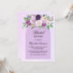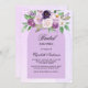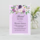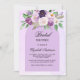 Um fundo violeta, lavanda, de cor aquosa. Decorado com flores violetas e roxas. Personalize e adicione um nome e detalhes da parte. O nome é escrito com um script de estilo manuscrito