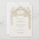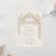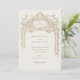 Este convite de casamento, inspirado em antiguidades, mostra um elegante fundo de marfim adornada com detalhes florais e arquitetônicos intrincados em tons de sépia. A frente da carta apresenta um belo ornamentado, enquadrando os detalhes do casamento com a sofisticação clássica. A combinação da serifa refinada com os delicados sotaques florais cria um eterno, a estética da safra. A parte de trás do cartão continua o tema luxuoso com uma urna finamente esboçada, repleta de flores, acrescentando um toque pessoal e elegante. Este convite é perfeito para um casamento formal, inspirado na vintagem, que oferece uma mistura de encanto tradicional e luxo subestimado.