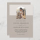 Simples com o estilo mínimo moderno, este elegante convite de casamento apresenta um modelo de fotografia de arco para personalizar com a sua foto selecionada. Dois tons neutros de bege claro e bege esticado adicionam um estilo simples a este convite. Um emparelhamento de fontes elegante inclui uma combinação de fontes serif com uma caligrafia acentuada "e" juntando os nomes da noiva e do noivo. Este convite é uma escolha maravilhosa para casamentos ao longo do ano. Você pode alterar as cores de fundo para se adequar à paleta de cores do seu casamento selecionando "editar usando design modelo" e mudando as cores da camada de fundo para seu gosto.
