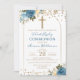 Arch Dourado Dusky Blue Floral Primeiro Convite à Comunhão Sagrada