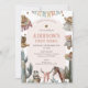 Foto de Arch Back First Rodeo Western primeiro aniversario Invitation Girl no primeiro convite de aniversário de rodeio com cavalo, botas de vaquinha, chifres de touro, cacto e muito mais em fundo branco com arco rosa e foto no verso. O primeiro rodeio desta garota ou o primeiro convite de aniversário temático ocidental pode ser usado para qualquer idade e é ideal para alguém que procura um convite rústico.