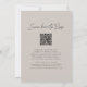 Chic Arch Modern Script QR Code RSVP Taupe e Convite de Casamento Ecru... Nosso convite de casamento minimalista de cores quicas apresenta um quadro moderno para o seu texto de convite num fundo delgado. O texto para "Casamento" é apresentado na tenda escrita manual contemporânea com o texto do convite acima e abaixo, em serif clássica e tipografia itálica romântica. Um código QR para o seu site de casamento é exibido no verso, permitindo que seus convidados RSVP online e vejam todos os detalhes, incluindo recepção, registro de presentes, acomodações e opções de menu. O código QR do site de casamento e todo o texto (além do gráfico de caligrafia) podem ser facilmente revisados com suas próprias informações usando o modelo de personalização.