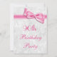 Convites elegantes para comemoração de 90 de mulheres. Convite para festas de aniversário de 90 anos / 90 anos. Um lindo fundo de cor damasco branca com espirros e floreios de ornamentado e uma imagem bonito, na moda, bonita, cinzenta, romântica de arco rosa e fita. Estes convites glamourosos, chicos e clássicos são lindamente sofisticados e são decorados/impressos em ambos os lados. O texto é totalmente personalizável e pode ser usado para qualquer aniversário de idade: - 91ruas, 92º, 93º, 94º, 95º, 96º, 97º, 98º, 99º, etc. Todos os convites no Zazzle têm imagens impressas em formato plano. Arcos e imagens de fitas adquiridas de designs digitais por elena. Se precisar de ajuda para personalizar o seu convite, entre em contato comigo na minha loja e eu ficarei feliz em ajudar.