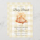 Nossa coleção de chás de fraldas de brunch de bebê de panquecas, bonitinha e neutra, design com arco d'água, panqueca de mel em fundo gingham amarelo, este design é um design neutro com cor de terra neutra mutada, perfeito para a festa de chá de fraldas de menino e menina.