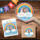 Celebre seu primeiro aniversário com o Arco-íris sobre o design das Nuvens! Esse tema adorável é perfeito para uma festa temática do arco-íris, com seu arco-íris colorido e seu arco-íris mágico unicórnio. A design apresenta um bebê super fofo do arco-íris, rodeado por nuvens de céu azul e uma bela mensagem de aniversário de nuvens do arco-íris. Esta design é perfeita para festas de arco-íris para crianças, com sua divertida e divertida vibração. O arco colorido do arco-íris adiciona um toque vibrante a qualquer festa, fazer que seja uma escolha excelente para uma festa temática de nuvens. Seu pequeno amará o arco-íris mágico de unicórnio, acrescentando um toque de capricho ao seu dia especial. Então adicione alguma magia ao seu dia especial com o Arco-Íris sobre o design das Nuvens!